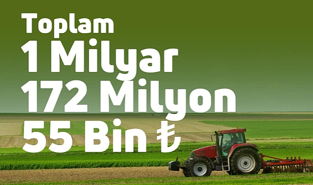 Tarım ve Orman Bakanı İbrahim Yumaklı, çiftçilere 1 milyar 172 milyon 55 bin TL Destek ödemesi yapıldığını duyurdu.Bakan Yumaklı yaptığı açıklamada; "1 milyar 172 milyon TL tarımsal destekleme ödemesi bugün çiftçilerimizin hesaplarına aktarıldı. Hayırlı ve bereketli olsun." dedi.Yapılan desteklerin ayrıntıları şu şekilde; Bitkisel Ürün Sigortası Desteği kapsamında 1 milyar 137 milyon 108 bin TL, Kırsal Kalkınma Yatırım Desteği kapsamında 34 milyon 947 bin TL. GÜRKAN GÖREN