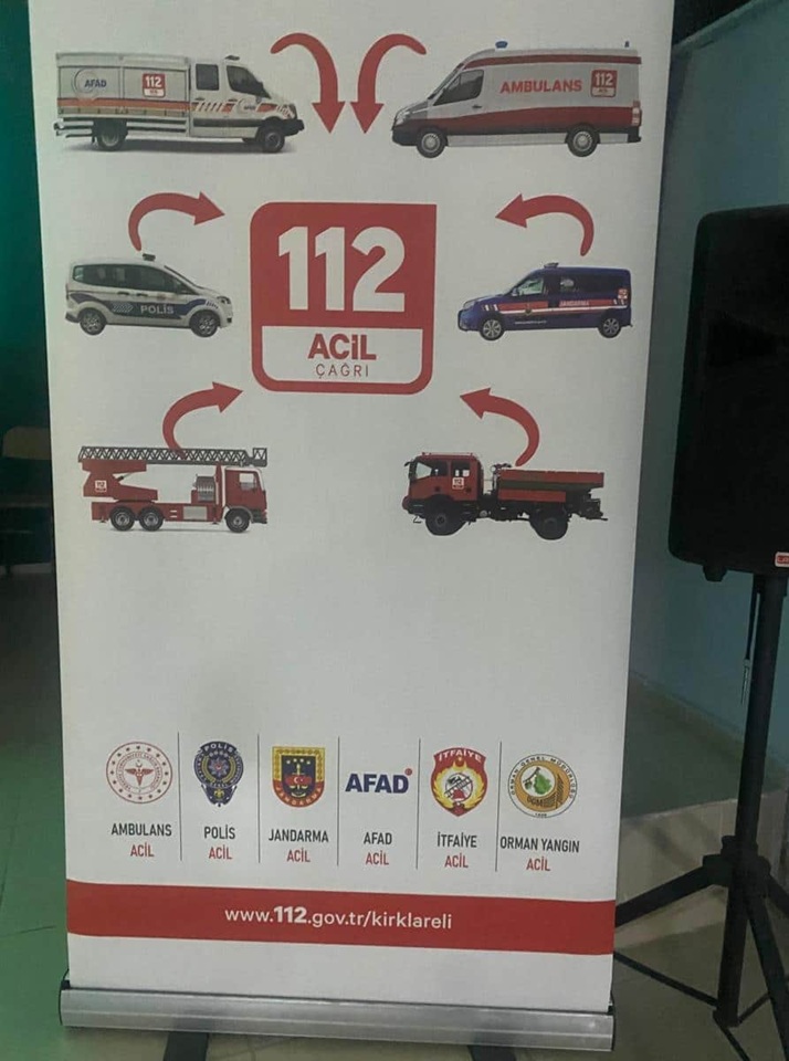 Acil Durumda Bir Bir İki 112 Projesi kapsamında yürütülen bilgilendirme çalışmaları, öğrencilerde erken yaşta acil durum bilinci oluşturmayı hedefliyor. Bu doğrultuda Kırklareli 112 Acil Çağrı Merkezi Müdürlüğü ekipleri, Kırklareli genelinde eğitim faaliyetlerini sürdürüyor.