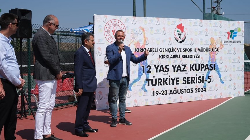 Kırklareli Valisi Birol Ekici ve Belediye Başkanı Derya Bulut, Kırklareli Gençlik ve Spor İl Müdürlüğü tarafından düzenlenen “12 Yaş Yaz Kupası Türkiye Serisi Tenis Turnuvası” ödül törenine katıldı. Türkiye’nin dört bir yanından 90 sporcunun yer aldığı turnuva, Kırklareli Belediyesi'nin sponsorluğunda gerçekleştirildi. Bu önemli etkinlik, genç yeteneklerin tenis alanındaki becerilerini sergilemeleri için büyük bir fırsat sundu.