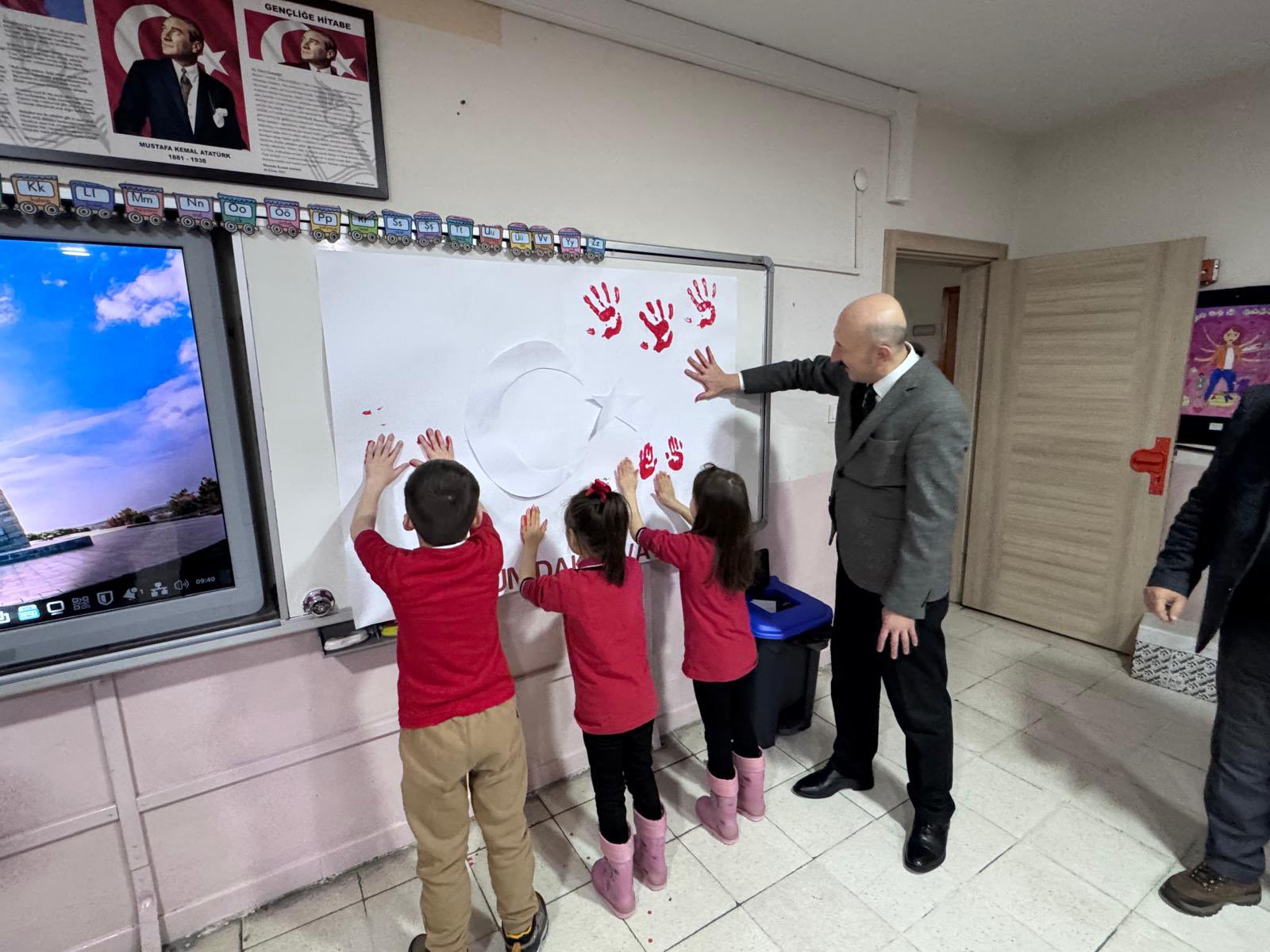 Gerçekleştirilen buluşmada; öğrenciler, öğretmenler ve eğitim yöneticileri, bayrağın birleştirici gücü etrafında aynı duygu ve heyecanla bir araya geldi. Geçmişten geleceğe uzanan ortak hafızamızın en güçlü sembollerinden biri olan al bayrak, sınıflarda yalnızca bir tema değil; birlik, sorumluluk ve umut duygularının da taşıyıcısı oldu.