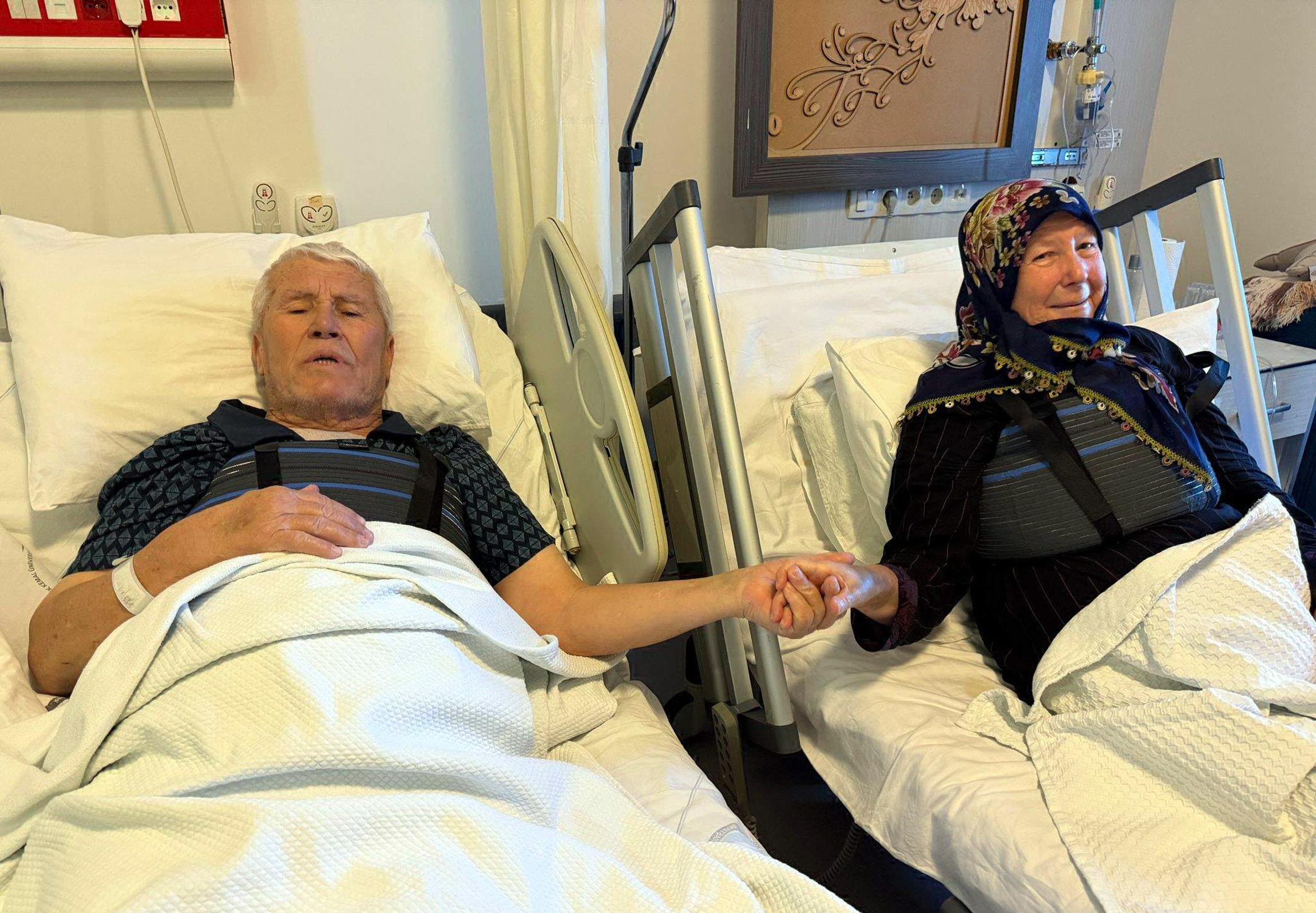 ÇANAKKALE'de yaşayan Safinaz Ceylan (69)-Erhan Ceylan (79) çifti, 46'ncı evlilik yıl dönümleri olan 6 Nisan'da Tekirdağ Namık Kemal Üniversitesi (NKÜ) Tıp Fakültesi Hastanesi'nde birlikte baypas ameliyatı oldu. 2 çocuk, 4 torun sahibi olan çift, başarılı geçen ameliyatların ardından aynı odayı paylaştı.