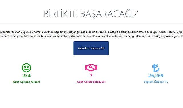 Lüleburgaz Belediyesi, sosyal dayanışmayı teşvik etmek ve ihtiyaç sahiplerine destek sağlamak amacıyla hayata geçirdiği "Askıda Fatura" uygulamasında dikkat çeken gelişmelere imza attı. 9 Nisan 2024 tarihi itibariyle, uygulamada 7 fatura askıda beklerken, toplamda 234 fatura ödendi ve 26 bin 269 TL’lik bir destek sağlandı."Askıda Fatura" uygulaması, Lüleburgazlı vatandaşların sosyal sorumluluk projelerine katkıda bulunmalarını kolaylaştırıyor. Yardımseverler, askidafatura.luleburgaz.bel.tr adresi üzerinden askıda bekleyen faturaları görüntüleyebilir ve ödemelerini yaparak yardımlarını ulaştırabilirler.Bu uygulama, ihtiyaç sahibi bireylerin faturalarını ödeme konusunda yaşadıkları zorlukları hafifletmeyi amaçlıyor. Lüleburgaz Belediyesi, bu girişimle hem toplumsal dayanışmayı artırmayı hem de vatandaşların daha aktif bir şekilde yardım süreçlerine dahil olmalarını sağlamayı hedefliyor.Yardımseverlerin desteğiyle büyüyen bu uygulama, toplumsal sorumluluk bilincini artırırken, Lüleburgaz'ın sosyal dayanışma örneklerinden biri olarak dikkat çekiyor. Vatandaşlar, ihtiyaç sahiplerinin faturalarını ödeyerek bu güzel projeye katkıda bulunabilirler.Fotoğraf: Lüleburgaz BelediyesiAYSUN ÜN