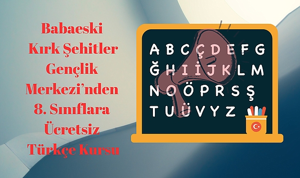 Türkçe Eğitimine katılmak isteyen 8. sınıf öğrencileri için kontenjanlar sınırlı sayıda. Kayıt işlemleri Babaeski Kırk Şehitler Gençlik Merkezi'nde gerçekleştirilecek. Yoğun ilgi nedeniyle öğrencilerin kayıtlarını erken tamamlamaları öneriliyor.