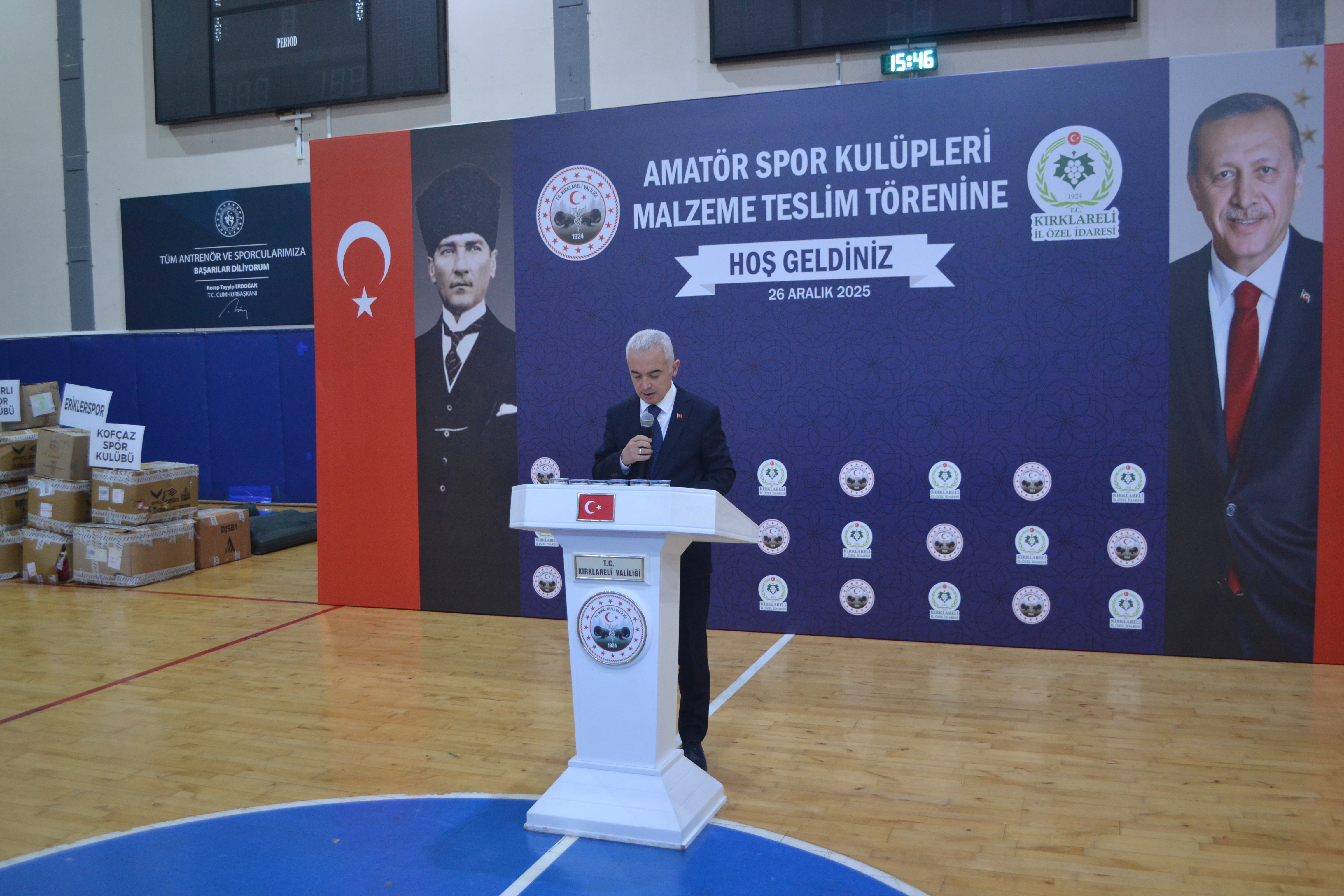 Kırklareli Valisi Uğur Turan, 2025 yılı Kırklareli İl Özel İdaresi bütçesi kapsamında il genelinde faaliyet gösteren 27 amatör spor kulübüne yönelik sağlanan malzeme desteği dolayısıyla düzenlenen amatör Spor Kulüpleri Malzeme Teslim Töreni’ne katıldı. Atatürk Spor Salonu’nda gerçekleştirilen program, spor camiasını bir araya getirdi.