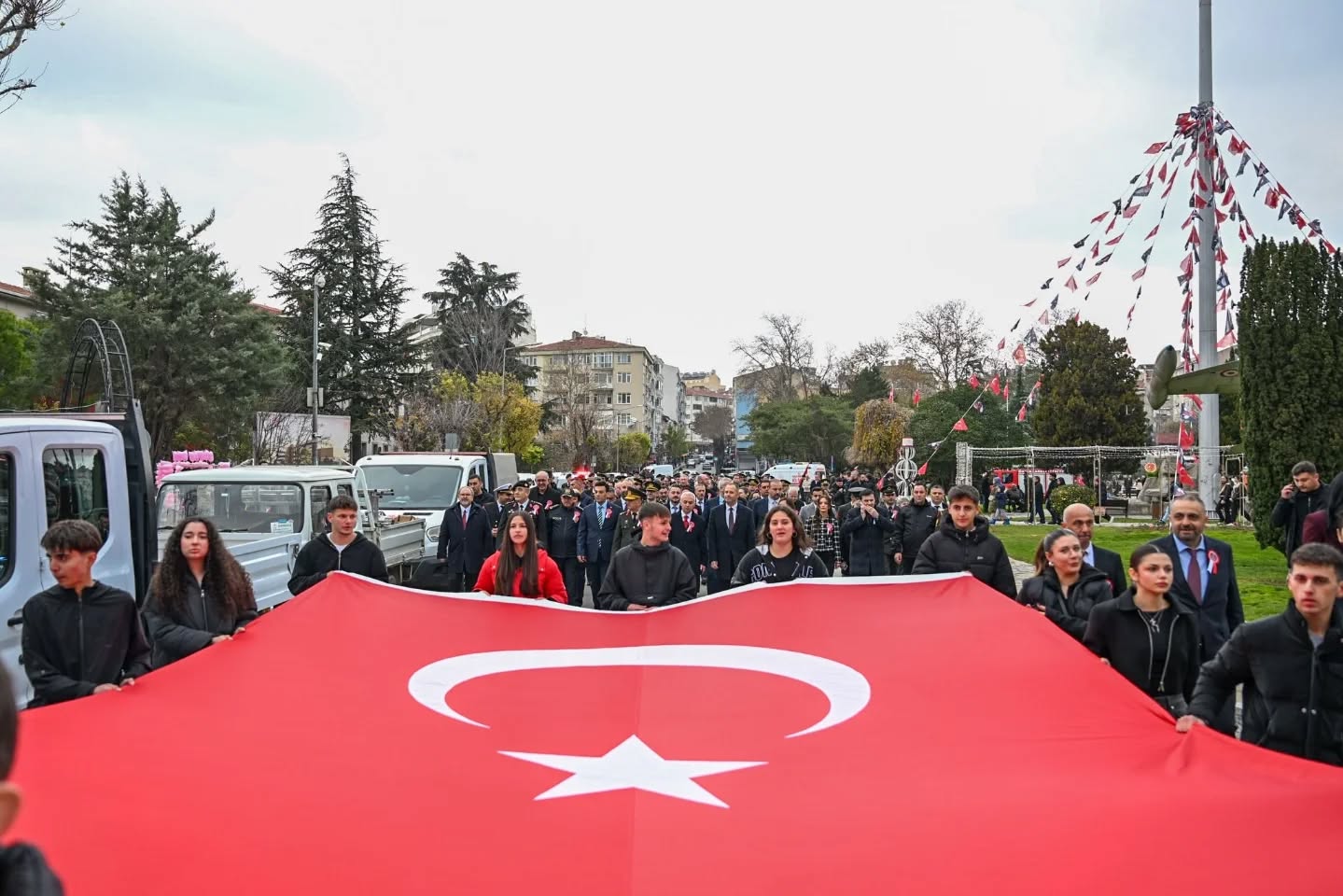 Çelenk sunumunun ardından program, kutlama etkinlikleriyle devam etti. Vali Uğur Turan öncülüğünde, şanlı Türk Bayrağı eşliğinde düzenlenen kortej yürüyüşü, kent merkezinde yoğun katılımla gerçekleştirildi. Yürüyüş, vatandaşlardan büyük ilgi gördü.