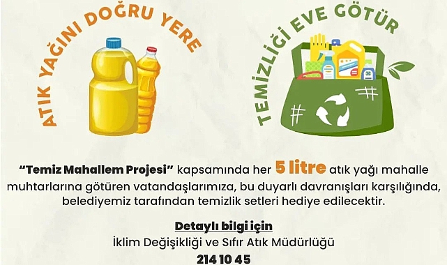 Kırklareli Belediyesi, "Temiz Mahallem Projesi" kapsamında çevre dostu bir uygulama başlattı. Bu projeyle, vatandaşların atık yağlarını doğru bir şekilde geri dönüşüme kazandırmaları teşvik ediliyor. Mahalle muhtarlarına her 5 litre atık yağı götüren vatandaşlara, belediye tarafından temizlik setleri hediye edileceği duyuruldu.