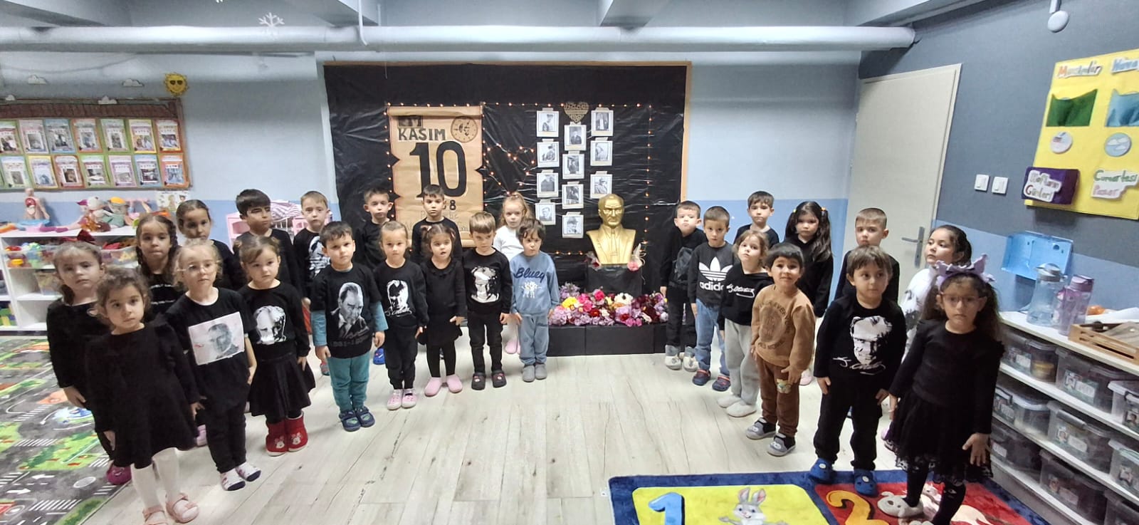 Etkinlikte öğrenciler, Atatürk’e olan sevgilerini şiirlerle, şarkılarla ve özel hazırladıkları koreografilerle ifade etti. Atatürk portreleriyle süslenen sınıf ortamı, duygusal anlara sahne oldu. Veliler ve öğretmenler, miniklerin performanslarını gururla izledi.
