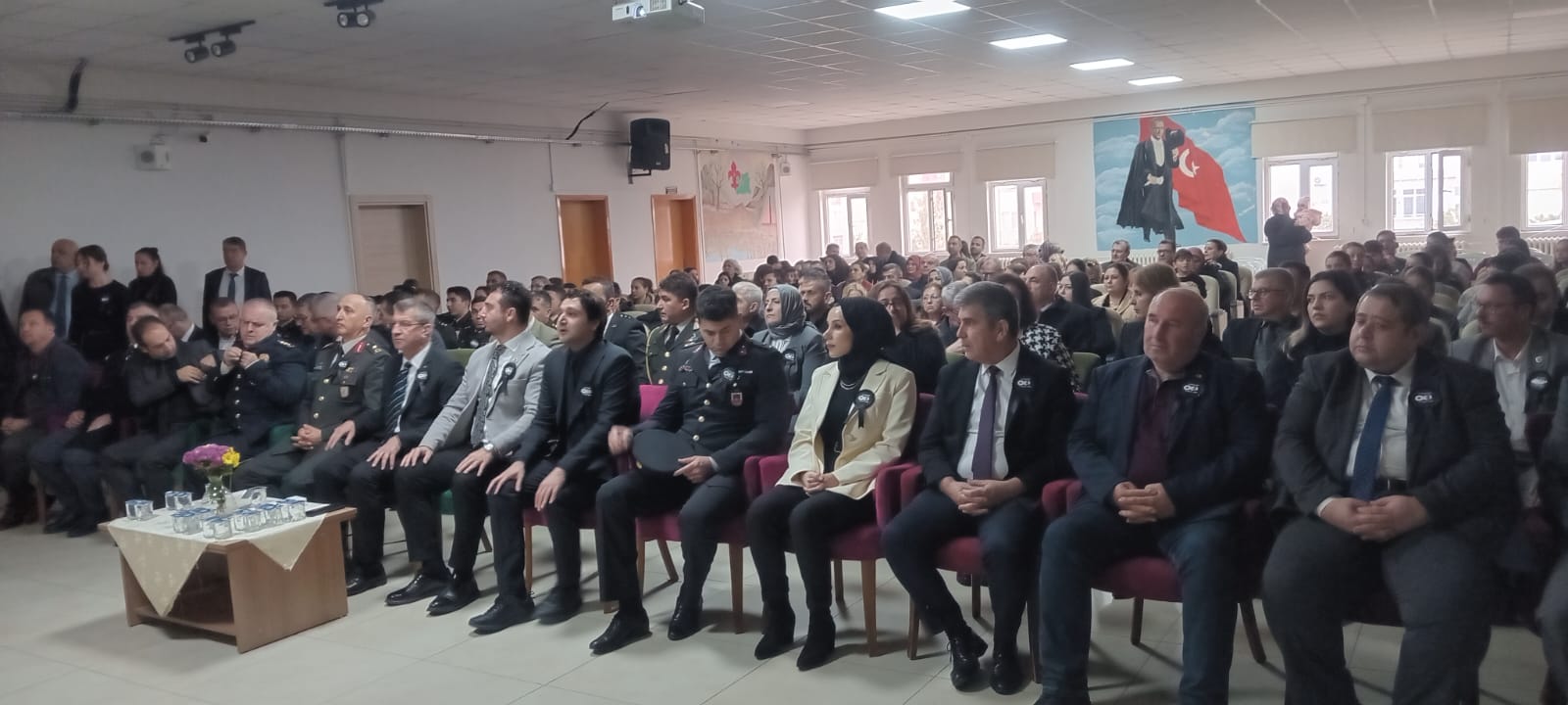 Çelenk sunma töreninin ardından etkinlikler, saat 09.30’da Cumhuriyet İlkokulu Çok Amaçlı Salonu’nda devam etti.