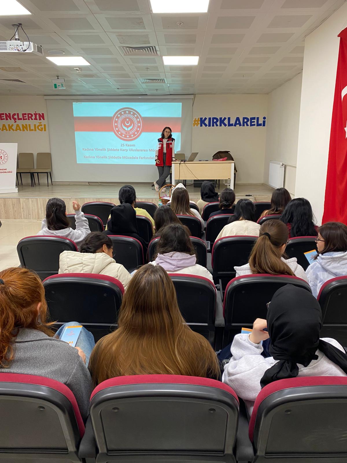 Kırklareli Aile ve Sosyal Hizmetler İl Müdürlüğü, “25 Kasım Kadına Yönelik Şiddete Karşı Uluslararası Mücadele Günü” kapsamında önemli bir farkındalık çalışmasına imza attı. Babaeski Kredi ve Yurtlar Müdürlüğüne bağlı kız öğrenci yurdunda düzenlenen eğitim programı, gençlerin bilinçlendirilmesine yönelik değerli mesajlar içerdi.