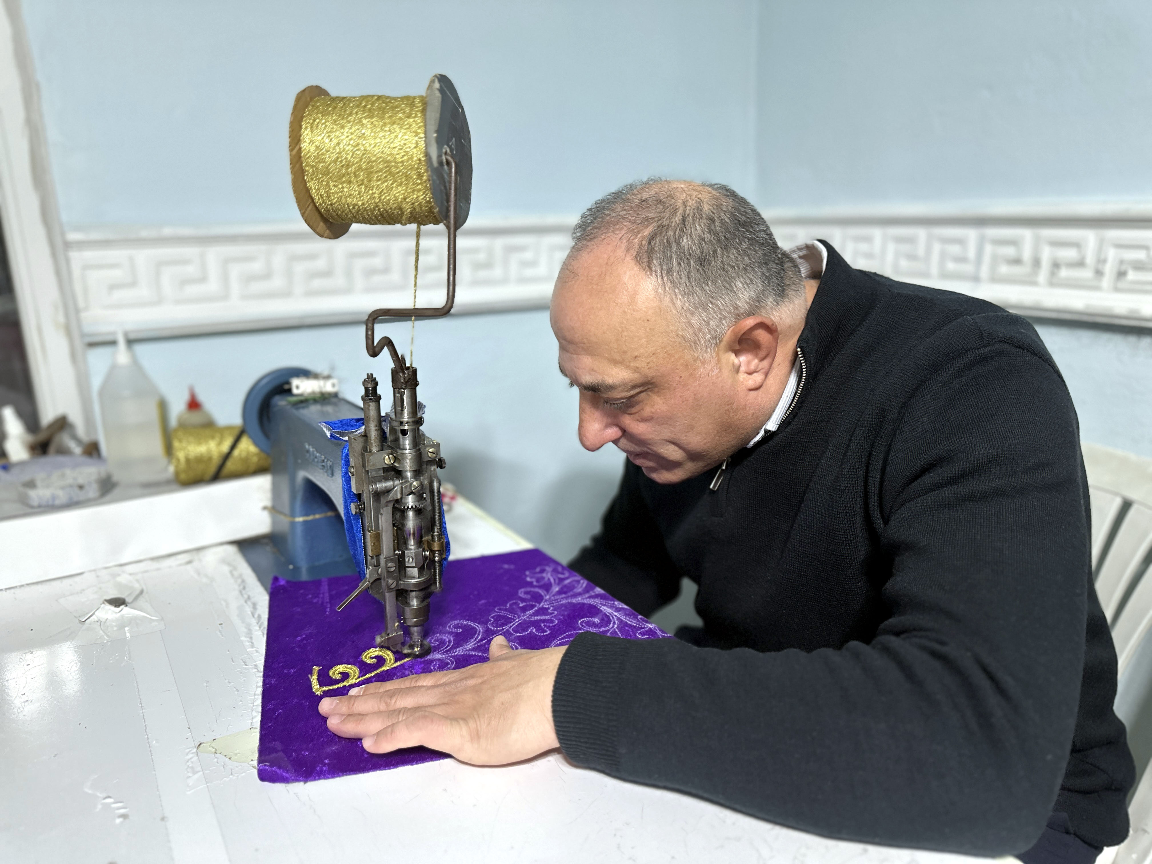Kente 9 yıl önce İstanbul’dan gelip garsonluk yapan evli ve 3 çocuk babası Levent Döngel, 13 yaşında öğrendiği bindallı sanatını boş zamanlarında evinde kurduğu atölyesinde yaşatıyor. Döngel, İstanbul’da öğrendiği sanatında ustalaşarak, 35 yıldır el emeğini kumaşa işliyor. Bir motifin tamamlanması için 3-4 gün çalıştığını anlatan Levent Döngel, mesleği öğrenmek isteyen olmamasına dikkat çekti. İlkokul mezunu olduğu için usta öğretici belgesi alamadığını belirten Döngel, yetkililerden bu konuda destek bekliyor.‘ZENGİNLİĞİN İFADESİ’Bindallının yoğun işlemeli bir el sanatı olduğunu anlatan Levent Döngel, “Osmanlı Dönemi’nde saray mensuplarının daha çok tercih ettikleri işlemeler bunlar. Biz de onları yaşatmaya çalışıyoruz. Öncelikle çizim aşaması var. Çizimden sonra bir taslak oluşturuyoruz, kalıp hazırlıyoruz. Daha sonrasında makineye alıp işlemeye başlıyoruz. Her kumaşa yapılabiliyor bindallı, yani kumaş fark etmiyor. Özelliği, el emeği olması. Aslında zenginliğin ifadesi. Daha çok elit kesimler giyiyormuş o dönemlerde. Gösterişi seven insanlar giyiyormuş. Günümüzde de Roman camiasında daha çok seviliyor" diye konuştu.‘EL, AYAK VE BEYİN KOMBİNASYONUYLA ÇALIŞMANIZ GEREKİYOR’Bu sanatı mesleğin ustalarından öğrendiğini dile getiren Döngel, “1993 yılında Gedikpaşa'da başladım mesleğe. Orada en iyi ustalardan eğitim aldım, 13-14 yaşlarında falandım. Bir nakışçı vardır, bir de üreten nakışçı vardır. Nakışçının önüne hazır materyal gelir, oturur makinede onu yapar. Bir de üretmek var. Desen yönünde, çizim yönünde veya nasıl bir motif oraya oturtturulacak? Burada işte ustalık devreye giriyor. Şu an bu işi yapan otomatik makineler var ama onlar el emeği değil. Bizim özelliğimiz el, ayak ve beyin kombinasyonuyla çalışmamız; göz, el, ayak, beyin. Yani makineye oturduğunuz makineyle bütünleşmeniz gerekiyor bir ürün yapabilmeniz için" ifadelerini kullandı.