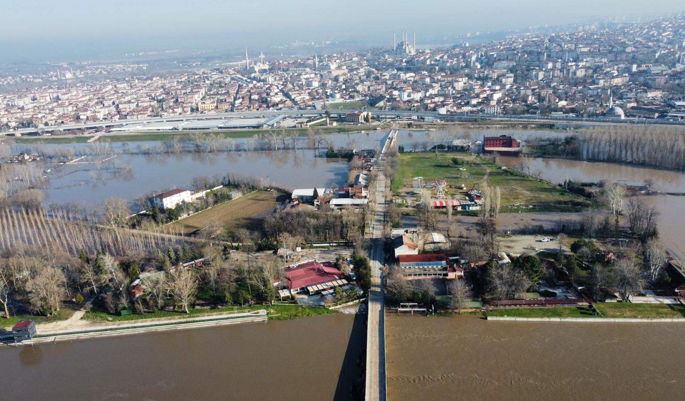 EDİRNE'de son yağışlar ve Bulgaristan'daki barajlardan su bırakılması ile debileri artan ve bazı bölümleri taşan Meriç ve Tunca nehirleri üzerindeki tarihi köprüler trafiğe kapatıldı; nehir kıyısındaki tesisler kısmen su altında kaldı.Son yağışlar, karın erimesi ve Bulgaristan'daki barajlardan su bırakılması ile birlikte Edirne'deki nehirlerde su seviyesi, 19 Şubat'ta artışa geçti. Tunca Nehri'nin taşması sonrası tarihi Kırkpınar Yağlı Güreşleri'nin yapıldığı Sarayiçi ve Kırkpınar Er Meydanı, su altında kaldı. Meriç Nehri'nin yatağından taşması sonucu da kent merkezine bağlı Bosnaköy civarında, bağ evlerinin bulunduğu bölgede kısmi taşkınlar meydana geldi.
