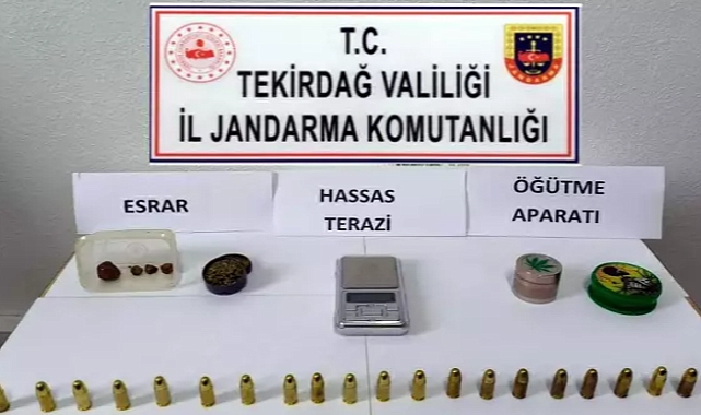 İl Jandarma Komutanlığı ekipleri, Çorlu ve Ergene ilçelerinde belirlediği şüphelilerin adresleri, araçları ve üzerlerinde yaptığı aramada esrar, hassas terazi, kenevir öğütme aparatı ele geçirdi. Gözaltına alınan F.A., L.Ü., Ö.Ü. ve A.A. ile ilgili soruşturma sürüyor. (DHA)