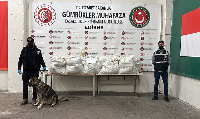 EDİRNE’de Bulgaristan’a açılan Kapıkule Sınır Kapısı’nda yurda giriş yapmak üzere gelen TIR’ın dorsesinde narkotik köpeği ‘Uzay’ ile yapılan aramada çuvallar içerisinde 113 kilo 664 gram esrar ele geçirildi, 1 şüpheli gözaltına alındı.Türkiye’ye giriş yapmak üzere Kapıkule Gümrük Kapısı’na gelen TIR, şüphe ve risk analizleri sonucu X-Ray taramasına sevk edildi. X-ray taramasında şüpheli yoğunluk tespit edilen TIR’da, dorsesinin gümrük mührünün ve dorse brandasının sağlam olduğu ancak güvenlik halatının ön kısmından kesik olduğu ve vida yardımıyla tutturulduğu görüldü. Şüphe üzerine TIR’ın dorsesi narkotik köpeği ‘Uzay’ ile arandı. Aramada, yasal yükün arasında kalan doğal boşluklara gizlenmiş vaziyette beyaz çuvallar fark edildi. Yapılan detaylı kontrolde 34 beyaz çuvalda 98 şeffaf vakumlu poşette 113 kilo 664 gram esrar ele geçirildi.Olayla ilgili 1 kişi gözaltına alındı. Şüpheli, işlemlerinin ardından adliyeye sevk edildi.DHA