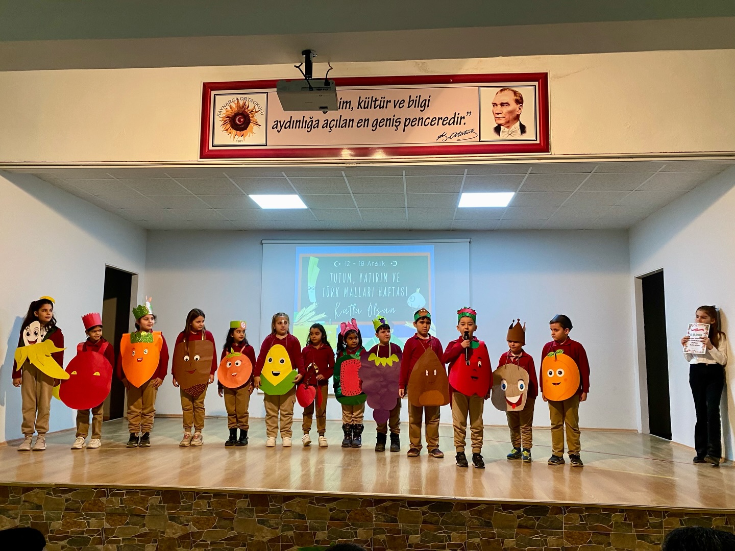 Okulda gerçekleştirilen etkinlikte öğrenciler, yerli ürünleri tanıtan sunumlar ve çeşitli etkinliklerle Yerli Malı Haftası’nı kutladı. Kaymakam Özderin, öğrencilerle yakından ilgilenerek hazırlanan çalışmaları inceledi ve emeği geçenleri tebrik etti.