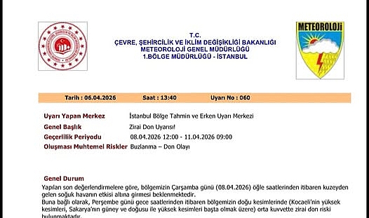 Yetkililer, bölgede orta kuvvette zirai don riskine dikkat çekiyor. Bununla birlikte buzlanma olaylarının da yaşanabileceği belirtiliyor. Bu durum, başta meyve ağaçları, sebze üretimi ve erken ekim yapılan tarım alanları olmak üzere birçok ürün için ciddi tehdit oluşturuyor. Tarımsal üretimde verim kaybı yaşanmaması için önlem alınması gerekiyor.