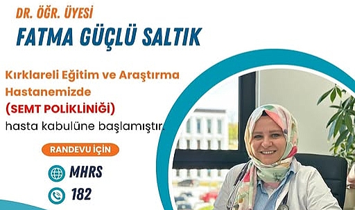 Kırklareli’nde sağlık hizmetlerine erişimi kolaylaştıracak önemli bir gelişme yaşandı. Kırklareli Eğitim ve Araştırma Hastanesi bünyesinde Aile Hekimliği alanında görev yapacak olan Dr. Öğr. Üyesi Fatma Güçlü Saltık, hasta kabulüne başladı. Yeni görevlendirme ile birlikte özellikle semt polikliniğinde sunulan sağlık hizmetlerinin daha etkin ve hızlı bir şekilde yürütülmesi hedefleniyor.