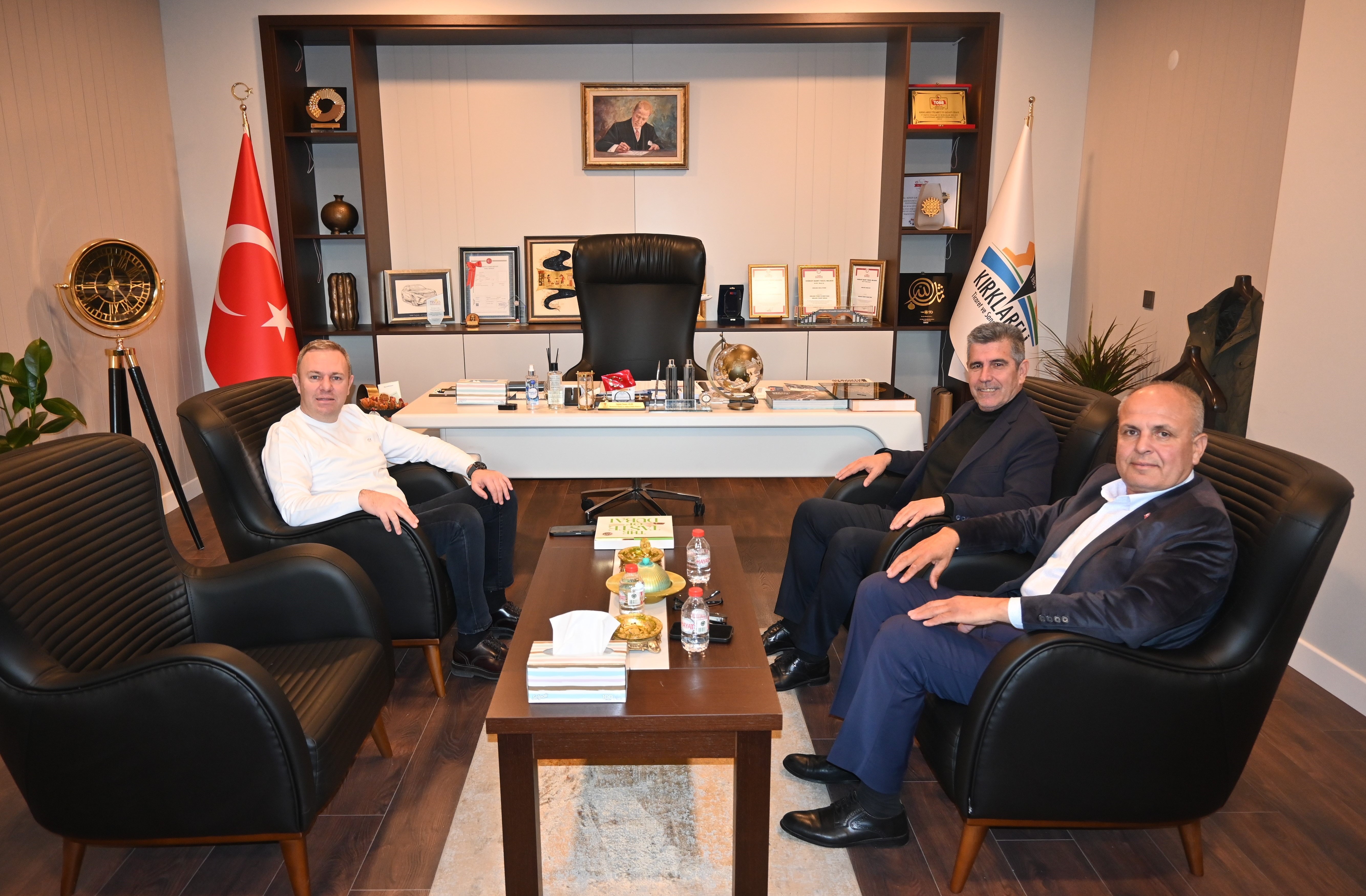 Kırklareli Ticaret ve Sanayi Odası (Kırklareli TSO) Yönetim Kurulu Başkanı Soner Ilık, odanın yeni hizmet binasına gerçekleştirilen “Hayırlı olsun” ziyaretinde AK Parti Babaeski İlçe Başkanı Ali Alkan ve Başkan Yardımcısı Mustafa Buyur’u ağırladı. Ziyarette kent gündemi, ekonomik gelişmeler ve çözüm önerileri ele alındı.