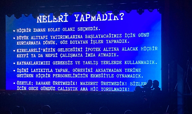 Sunumda, yönetim sürecinde Bahane ve mazeret üretmediklerinin altı çizildi. Başkan Bulut, “Bahane de üretmedik, mazeret de. Sizler için gece gündüz çalıştık ama hiç yorulmadık” sözleriyle, hizmet anlayışlarının temelinde sorumluluk ve kararlılık olduğunu ifade etti.