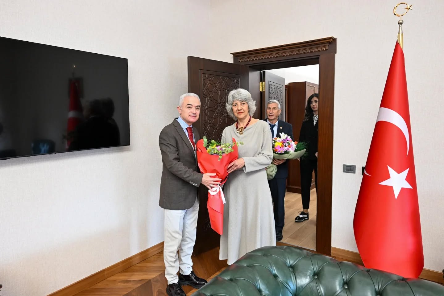 Kırklareli Valisi Uğur Turan, 19 Ekim Muhtarlar Günü dolayısıyla Merkez İlçe Muhtarları Dernek Başkanı İsmet Cebeci, Merkez İlçe Mahalle Muhtarları Dernek Başkanı Esra Mağıltaş ve İl İdare ve Denetim Müdürü Emine Belma Arslantaş’ı Valilik makamında kabul etti.