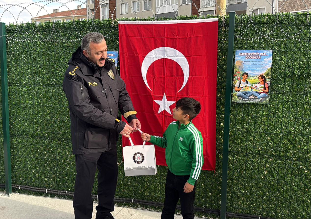 ‘MÜCADELE BAŞLATTIK’Program sonunda konuşan Tekirdağ İl Emniyet Müdürü Metin Turanlı, çocuklarla kurulan bağın önemine dikkat çekerek, “Tekirdağ Emniyet Müdürlüğü olarak arkadaşlarımızla beraber özellikle yasaklı maddelerle ilgili bir yeni konsept, yeni bir paradigma belirleyerek özellikle sorunun kaynağını olan yerlere birinci elden, en üst perdeden, bizzat başında bulunarak müdahale etme kararı aldık. Arkadaşlarımızla beraber yaklaşık bir yıldır bu şehirde özellikle Kore Mahallesi olarak diye bildiğimiz, yine aynı şekilde merkezde Aydoğdu diye bilinen, herkesin bildiği lokasyonlara yönelik çalışmaları kesintisiz sürdürüyoruz. Bu kapsamda her bir konuyla ilgili, her bir alanda yüzde 150 civarında müdahale artışlarımız, hasılat artışlarımız, rahatsızlık duyduğumuz ne varsa bununla ilgili üzerimize düşenleri, en üst perdeden, adeta arkadaşlarımızın tümünü seferber ederek mücadele başlattık. Türkiye’de belki birçok ilimizde bu kadar yoğun, narkotik birimleri dışında bu kadar yoğun bir şekilde sahada müdahale eden başka bir ilimiz yoktur” dedi.‘KORE ALGISINI TEMİZLEYECEĞİZ’Çocukların uyuşturucu tacirlerinin elinden kurtarılması için çalışmalarının sürdüğünü söyleyen Turanlı, “İnşallah bu çocukları uyuşturucu tacirlerinin, şeytanların elinden kurtaracağız. Paydaşlarımızla beraber, özellikle Millî Eğitim camiasıyla beraber, öncelikle bunların okullaşmalarını daha yukarıya taşımak, bunların eğitim imkanlarını kolaylaştırmak, onlara yardımcı olmak noktasında gayretlerimiz var. 24 saat, 365 gün burada olacağız. Özellikle mahalle içerisinde bize ihtiyaç duyan, kendini kötü hisseden, orada insanımıza kötü alışkanlıklara satmaya, içmeye sevk eden, insanlara rahatsızlık eden onlarca kişi var. Ben bunu biliyorum. Mahallede oturup da bu işe bulaşmış olanların yüzde 25 olduğunu biliyorum. Kore algısını temizleyeceğiz. Çorlu’yu bir huzur adası haline getireceğiz. İnşallah bunu milletimizle beraber, Çorlu halkımızla beraber, sivil toplum kuruluşlarıyla, resmî kurum ve kuruluşları ile beraber hep beraber yapacağız” diye konuştu.Ziyaret, çocuklarla hatıra fotoğrafı çekilmesinin ardından sona erdi.DHA