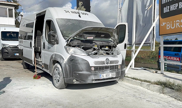 TEKİRDAĞ’ın Çorlu ilçesinde, akaryakıt istasyonunda park halinde alev alan servis minibüs yanarak kullanılamaz hale geldi.