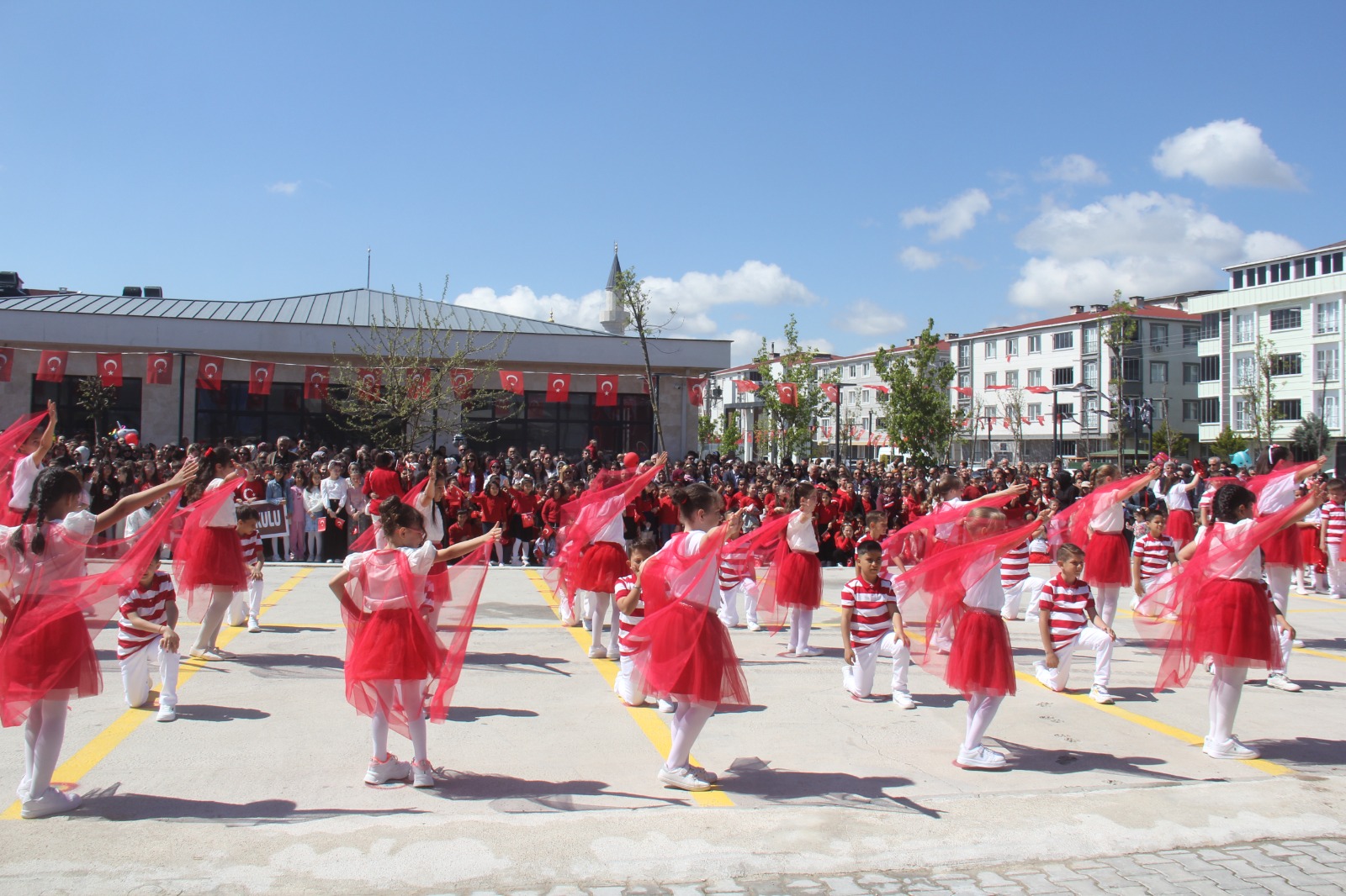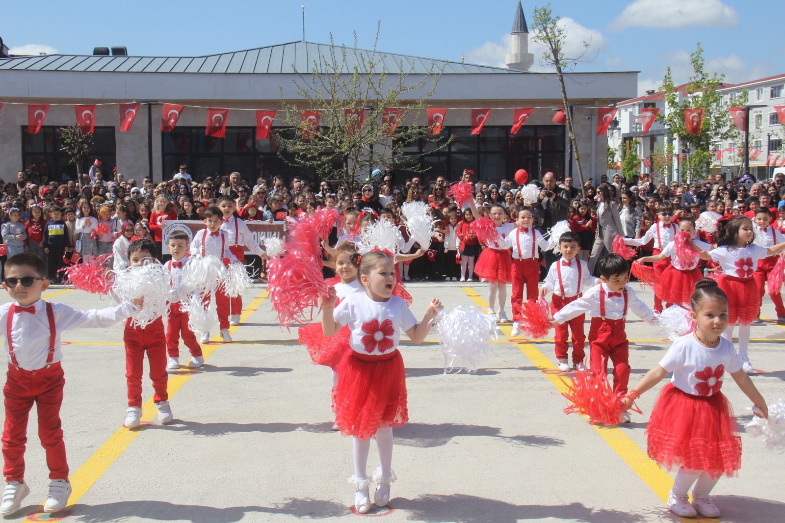 Ana sınıfı öğrencilerinin hazırladığı gösteriler ise bayrama ayrı bir renk kattı. Özel Ayşegül Karasu Anasınıfları ile 19 Evler İlkokulu anasınıfı öğrencilerinin sergilediği performanslar, izleyenleri hem duygulandırdı hem de gururlandırdı. Miniklerin enerjisi ve heyecanı alandaki herkese yansıdı.