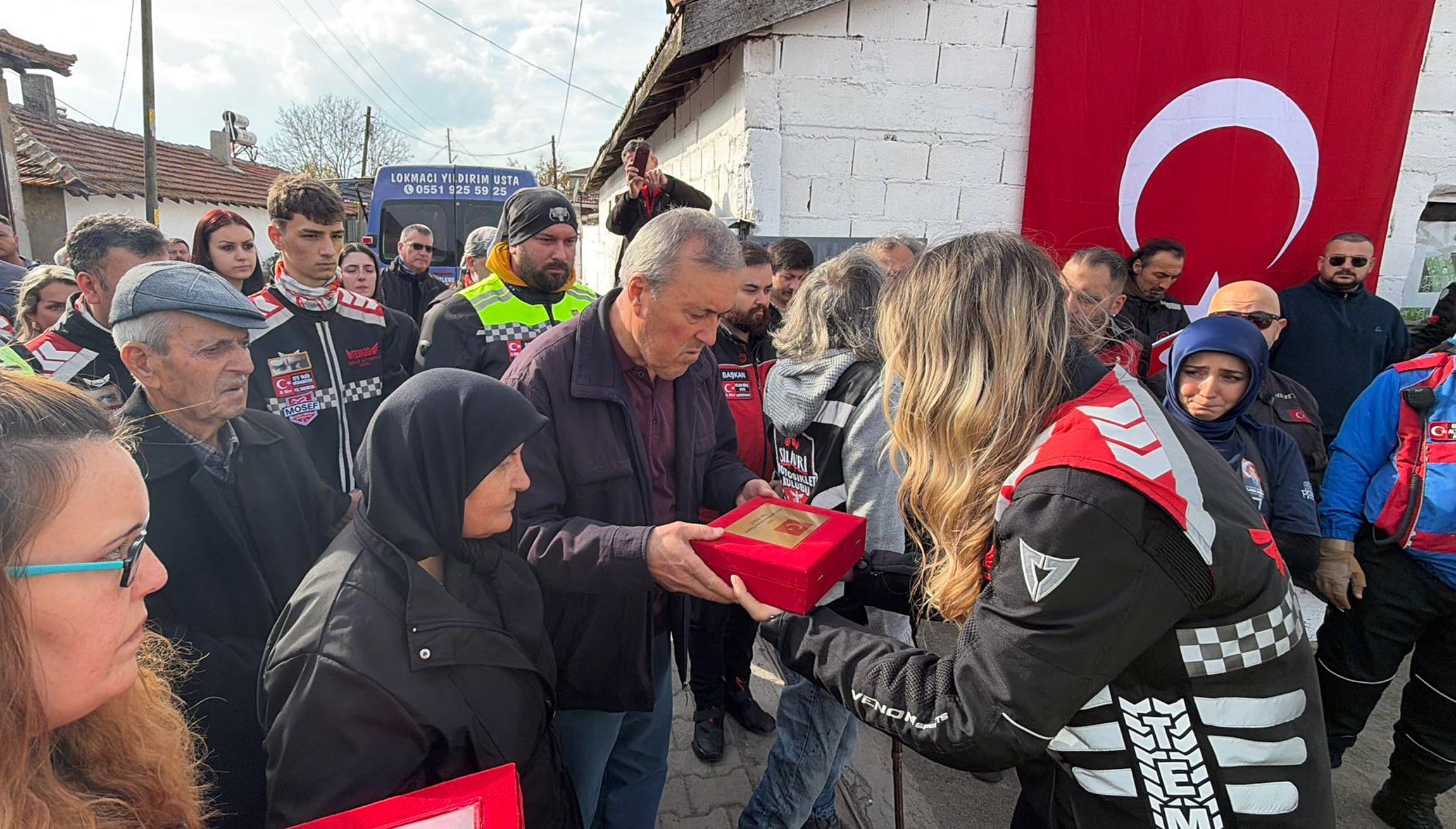 ‘BİNLERCE EVLADIMIZ OLDU’Ünal Aykut, duygulandığını belirterek, "Yurdumuzun her tarafından gelen değerli kardeşlerim. Benim bir tane oğlum şehit oldu ama binlerce evladımız oldu. Zor bir olay ama vatana evladımız helal olsun, vatanımız sağ olsun. Hepinizden Allah razı olsun. Her zaman gelirsiniz, misafirimiz olabilirsiniz, uğrarsanız memnun oluruz. Çünkü bir oğlum vardı, bundan sonra siz geldiğiniz zaman biz de oğlumuzu görmüş gibi olacağız" diye konuştu.'YALNIZ BIRAKMAYACAĞIZ'Perinthos Motosiklet Kulübü Başkanı Sunay Cin, Trakya'daki motosiklet derneklerinin bir araya geldiğini belirterek, "İstanbul'dan da katılan arkadaşlarımız oldu. Önce şehit ailemizi ziyaret ettik. Çanakkale'den getirdiğimiz kutsal toprağımızı, bayrağımızı ve Kur'an-ı Kerim teslim ettik. Ardından hep birlikte mezarlığa giderek, şehidimizin kabrinde dualarımızı okuduk. Bu ülke bizim ve böyle kalacak. Bugün burada bir evimiz olduğunu gördük. Şehit ailemiz bize sahip çıktı, biz de onları hiçbir zaman yalnız bırakmayacağız. Katılım sağlayan herkese çok teşekkür ederiz" ifadelerini kullandı.Silivri Motosiklet Kulübü Başkanı Özkan Kandemir de "Bizler bakkala gönderebileceğiniz çocuklarız. Bizler 'Gelin saçınızı okşayalım' diyeceğiniz çocuklarız. Sizlerin evinizi öğrendik, yurdunuzu öğrendik. Bundan sonra her kulübümüz, her arkadaşımız fırsat buldukça sizlere uğrayacak, sizi asla yalnız bırakmayacağız. Allah sizden razı olsun, bu vatana bir evlat verdiniz. Ne mutlu ki böyle yüce gönüllü bir anne-baba, ne mutlu ki böyle hayırlı bir evlat yetiştirdiniz" dedi.DHA