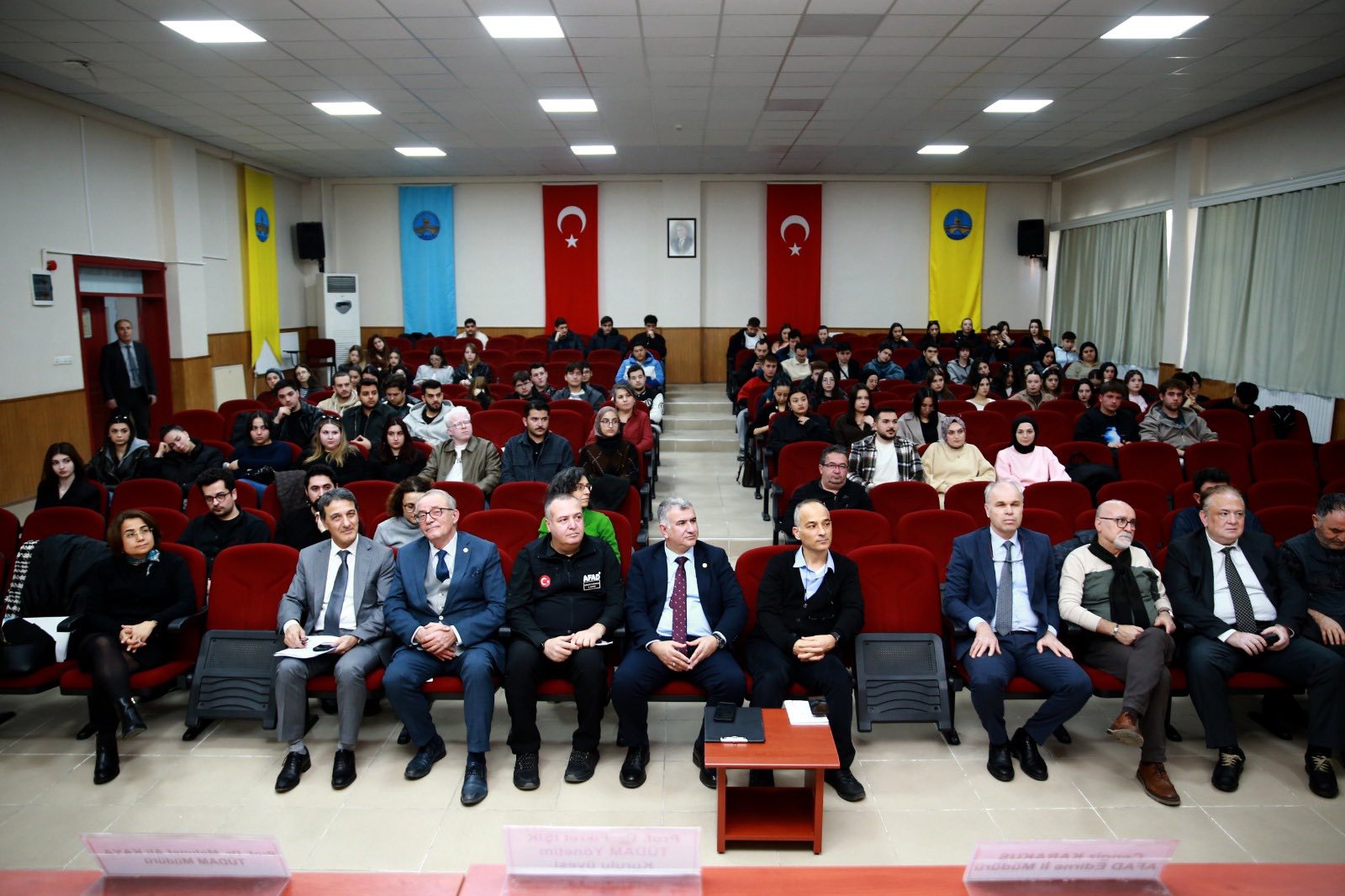 Trakya Üniversitesi Doğal Afet Yönetimi Uygulama ve Araştırma Merkezi (TÜDAM) tarafından Deprem Haftası kapsamında “Depremler, Afet Yönetimi ve Halk Sağlığı” başlıklı panel düzenlendi. Trakya Üniversitesi’nde gerçekleştirilen etkinlikte deprem gerçeği, afetlere hazırlık ve toplum sağlığı üzerindeki etkiler farklı yönleriyle ele alındı. Akademisyenlerin, kurum temsilcilerinin ve öğrencilerin yoğun ilgi gösterdiği panelde, afetlere karşı toplumsal bilinç oluşturmanın önemi vurgulandı.