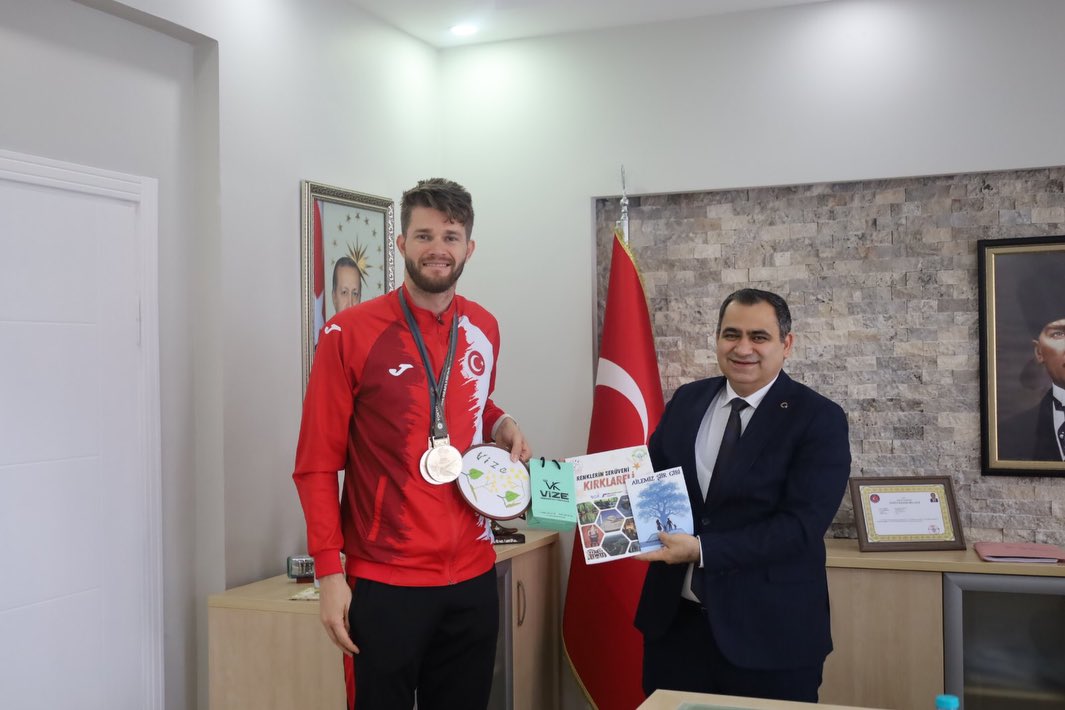 Vize Kaymakamı Kemal Balaban, Japonya’nın başkenti Tokyo’da düzenlenen İşitme Engelliler 25’inci Yaz Olimpiyatları’nda Türkiye’ye ilk altın madalyayı kazandıran milli sporcu Yasin Süzen’i makamında ağırladı. Çakıllı Mahallesi’nden olan başarılı sporcu, elde ettiği tarihi başarıyla hem Vize’nin hem de Türkiye’nin gururu oldu.